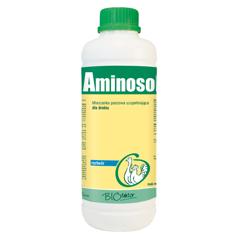 Płynny środek witaminowy bogaty w aminokwasy dedykowany w szczególności dla drobiu. Stosowanie preparatu zalecane jest po przebytych chorobach (w tym związanych z układem pokarmowym), problemach z przemianą materii, a także przy spadkach kondycji fizycznej zwierząt. Dozowanie witamin ptakom przyczynia się do poprawy ich kondycji fizycznej, a także do większych przyrostów masy. Skład preparatu AMINOSOL pozwala: