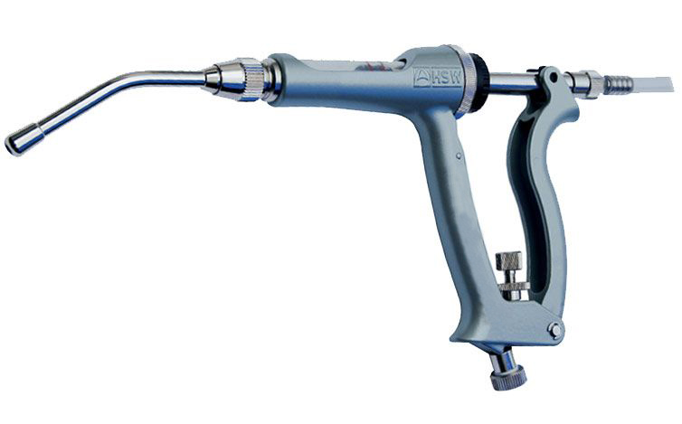 W pełni automatyczny drencher niemieckiej firmy HSW. Jest to typowo profesjonalny aplikator niezastąpiony przy dozowaniu leków, witamin lub innych medykamentów bezpośrednio do pyska zwierzęcia. Urządzenie jest w pełni automatyczne co sprawia, iż po wykonaniu wskazanej dawki cylinder automatycznie wypełni się kolejną dawką leku poprzez wąż doprowadzający. Całość wykonana jest niezwykle precyzyjnie i najwyższej jakości materiałów. W komplecie z drenczerem dołączona jest druga głowica z mocowaniem igieł luer lock, co sprawia, iż aplikator ten szybko może posłużyć jako strzykawka samo uzupełniająca. Do regulacji pracy służą dwie bezstopniowe śruby z kontr blokadami: jedna służy do precyzyjnej regulacji dawki, druga reguluje sprężynę odciągającą, co jest niezwykle przydatne przy aplikowaniu gęsty substancji. Specjalny przewód dołączony jest w komplecie do drenchera, dla łatwiejszej pracy warto wyposażyć się w specjalny kanister na medykamenty 2,5 litra lub zasobnik 5 litrów.