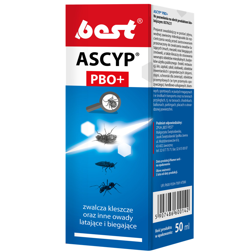 uniwersalny preparat owadobójczy o szerokim spektrum działania biobójczego. ASCYP PBO stosowany jest w celu zwalczania wszelkiego typu