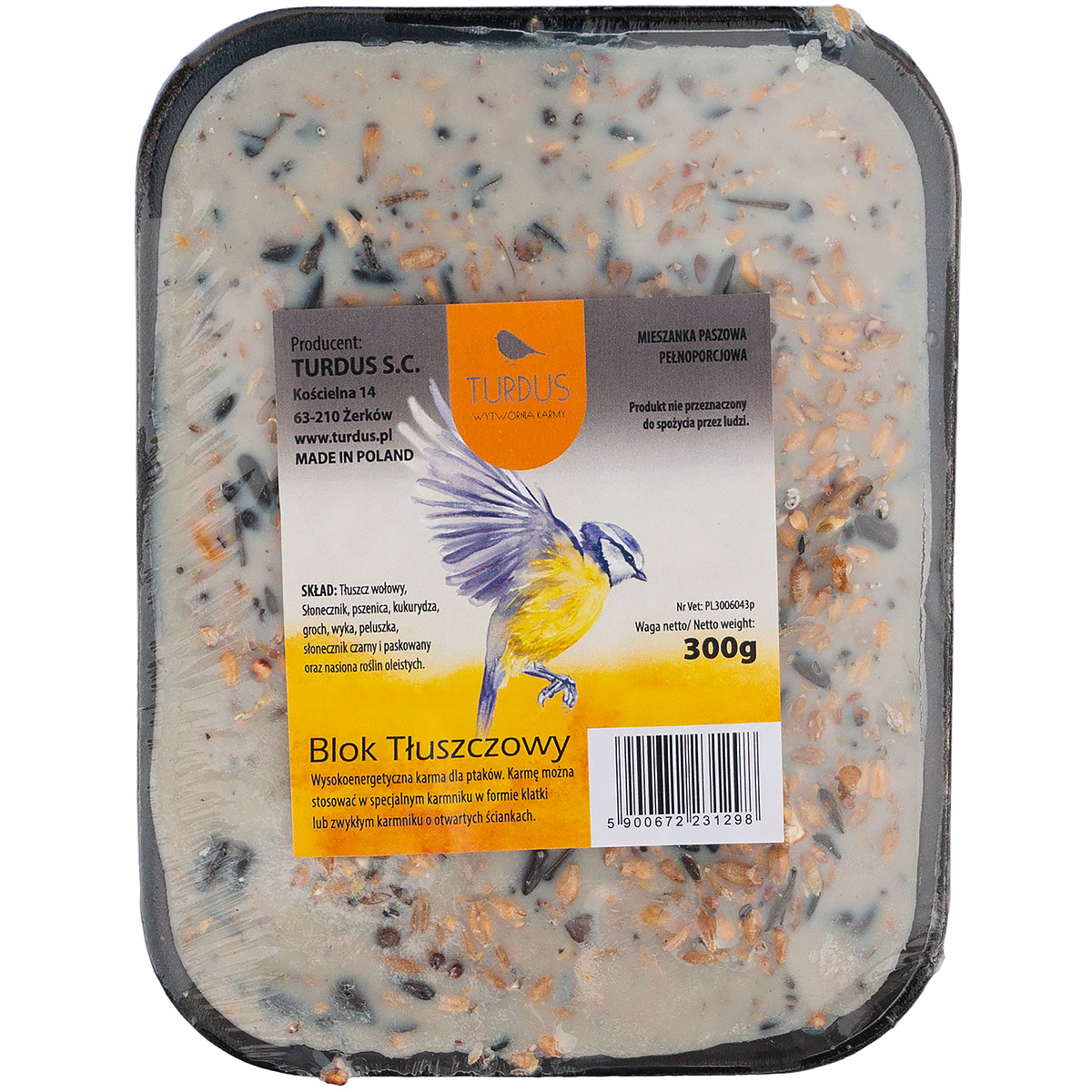 Blok tłuszczowy stanowi cenne źródło zapasów energetycznych, kiedy to ptaki mają ograniczony dostęp do naturalnego pokarmu. Doskonale sprawdza się do karmnika.