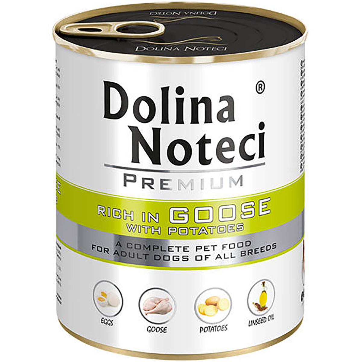 Mokra karma dla psa Dolina Noteci z gęsią i ziemniakami to pyszne, w pełni zbilansowane, bezzbożowe pożywienie dla Twojego pupila. Wysoka zawartość mięsa z gęsi sprawia, że karma dostarcza do organizmu psa dużą dawkę selenu i żelaza, które zapewniają prawidłowe funkcjonowanie układu krwionośnego. Ten rodzaj mięsa zaiwra również wiele innych cennych składników mineralnych oraz witamin z niemal wszystkich grup. Ziemniaki to także cenne źródło witamin i minerałów, pomagają w trawieniu, obniżają poziom cholesterolu i przyspieszają przemianę materii.