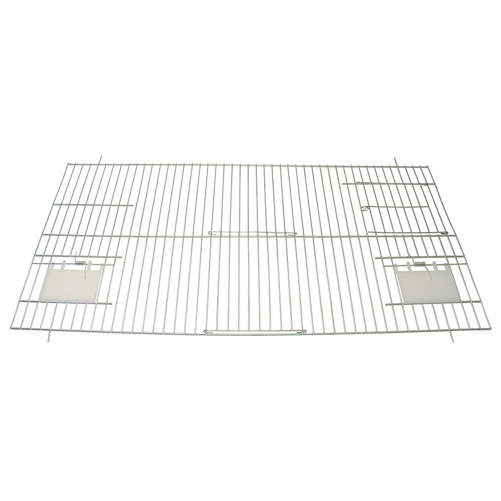 Mocny oraz wytrzymały front do klatek dla papug i kanarków wykonany z solidnego ocynkowanego drutu stalowego. Grubość stalowych prętów pionowych wynosi 2 mm, natomiast druty poziome zostały wzmocnione i ich grubość wynosi 3 mm. Odległość miedzy drutami wynosi 11 mm. Front do klatek dla kanarków ma wymiar 60 x 30 cm. Front do klatki dla papug wyposażony został w drzwiczki rozsuwane pionowo z dołu do góry. Wymiar drzwiczek to 14,5 cm x 11,5 cm. Dodatkowo front posiada dwa otwory z plastikową klapką (5,5 cm x 7,5 cm). Klapki zatrzaskują się samoczynnie, dzięki metalowej sprężynce. W otworze umieścić można transparentne karmidło dla kanarków na front klatki. Klapka chronić będzie wodę lub paszę przed zanieczyszczeniami.Parametry: