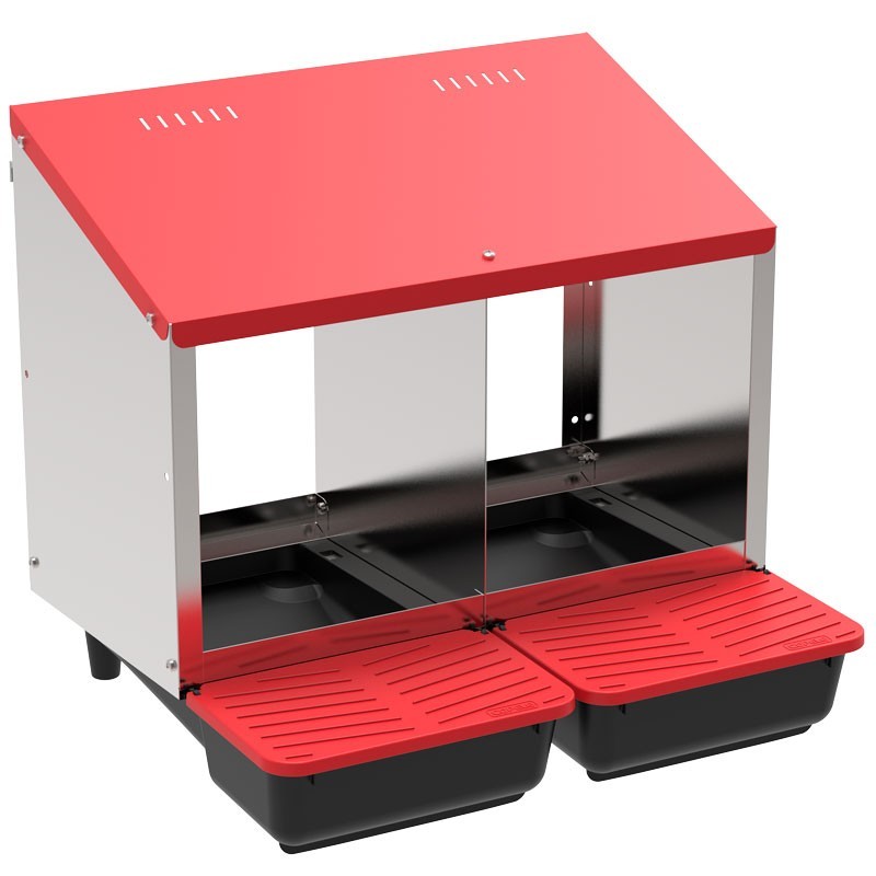 Gniazdo dla kur niosek zapewnia ptakom komfortowe, a także higieniczne warunki do znoszenia jaj. W górnej części budki znajdują się otwory wentylacyjne, a podłoga nachylona jest pod odpowiednim kątem, dzięki czemu jajka trafiają bezpośrednio do szuflady.