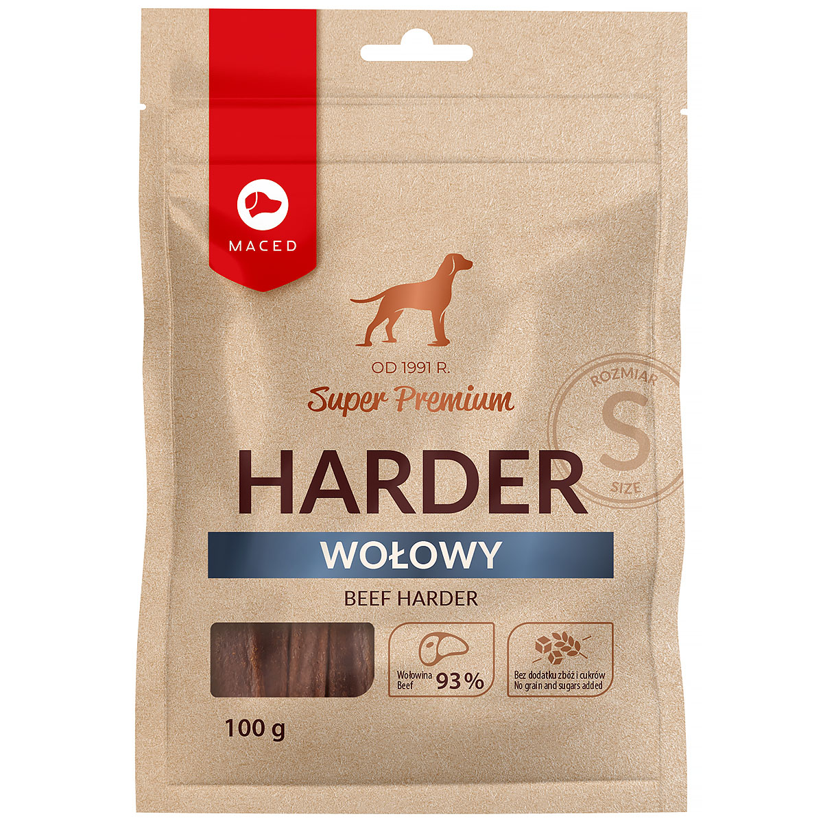 Harder wołowy to naturalny gryzak dla psa polecany dla psów ras mniejszych. Gryzak jest w 100% naturalny i nie zawiera dodatków jak konserwanty, barwnik, zboża, czy cukry. Harder wołowy przyczynia się do utrzymania zdrowych zębów psa. Smakołyki pozwalają na naturalne usuwanie kamienia nazębnego, a żucie przekąsek przez psa korzystnie wpływa na dziąsła. Żucie gryzaków przez czwórnogów pozwala również na zapewnienie świeżego zapachu z ich pyszczka.