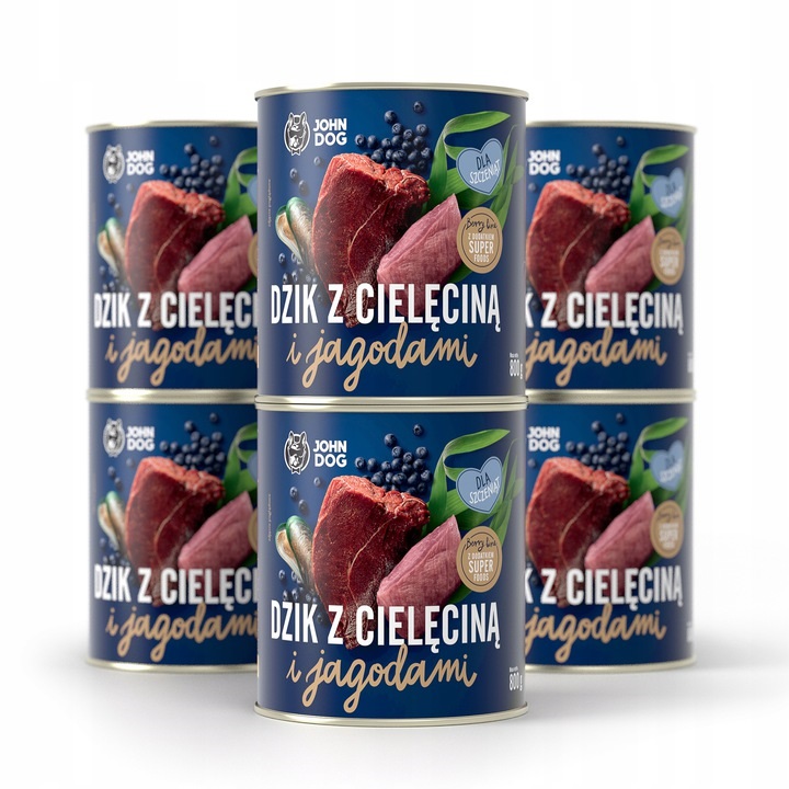 Zadaj pytanie o produkt JOHN DOG Mokra karma dla szczeniąt dzik z cielęciną i jagodami w puszkach 6x400g