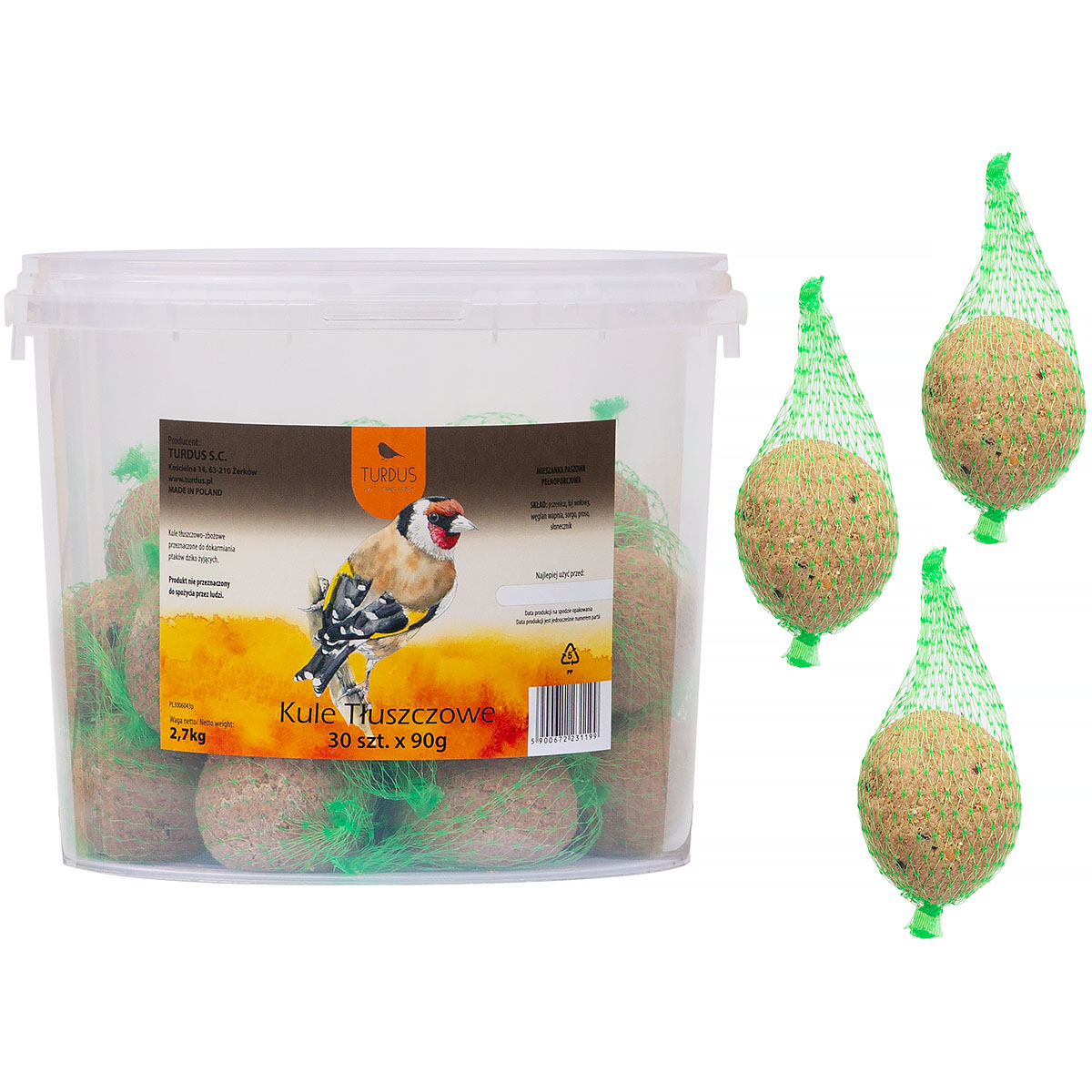 Kule tłuszczowe to karma tłuszczowo-nasienna stworzona z myślą o dokarmianiu ptaków wolnożyjących jak sikorki, wróble. Mieszanka tłuszczu wołowego oraz nasion zbóż została uformowana w pyzę, a następnie umieszczona w siatce, umożliwiającej łatwe pobieranie pokarmu przez ptaki. Tak zbilansowany pokarm dla ptaków jest źródłem zapasu energetycznego, potrzebnego ptakom zwłaszcza w okresie zimowym. Mroźna zima oraz śnieg utrudniają zdobywanie pokarmu przez ptaki. Dokarmiając dzikie ptaki pozwalasz im na przetrwanie zimy.