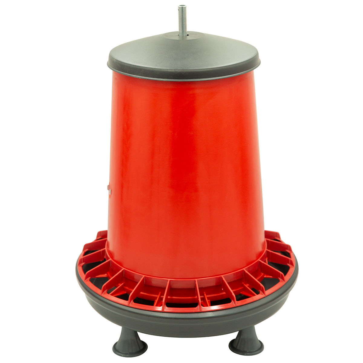 Ergonomiczne karmidło dla drobiu 18 kg zestawie z nóżkami i kratką przeciw rozsypywaniu. Prezentowane karmidło dla drobiu 18 kg doskonale sprawdza się w przydomowych hodowlach kur niosek, brojlerów, kaczek, indyków, bażantów i innych ptaków.