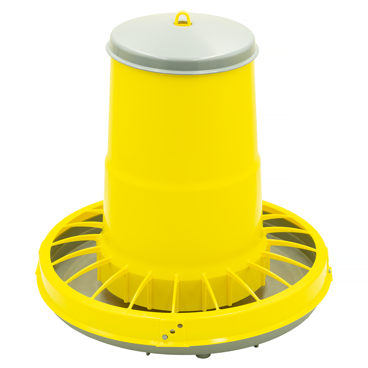 Duże karmidło dla drobiu do paszy suchej z 3 stopniową regulacją ilości wysypywanej paszy. Prezentowany karmnik na paszę jest przeznaczony dla różnego gatunku drobiu hodowanego w przydomowych wybiegach tj.: kury nioski, kaczki, gęsi, indyki i inne. Duże wymiary sprawiają, że karmidło może znaleźć swoje zastosowanie zarówno w mały przydomowych hodowlach jak i w dużych fermach przemysłowych. Odpowiednio dobrane rozmiary eliminują możliwość przewrócenia się zwłaszcza gdy karmidło jest pełne.