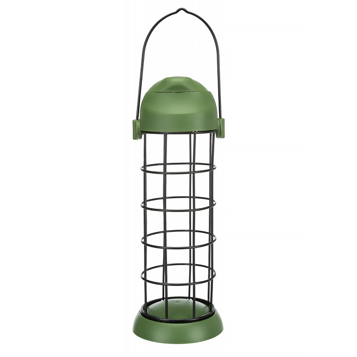 Karmnik na kule tłuszczowe został wykonany z wysokiej jakości stali nierdzewnej oraz wytrzymałego tworzywa sztucznego, co gwarantuje jego trwałość i odporność na zmienne warunki atmosferyczne. Zastosowanie kolorów zielonego i czarnego nadaje mu eleganckiego, naturalnego wyglądu, dzięki czemu doskonale wkomponuje się w otoczenie ogrodu, balkonu czy tarasu.