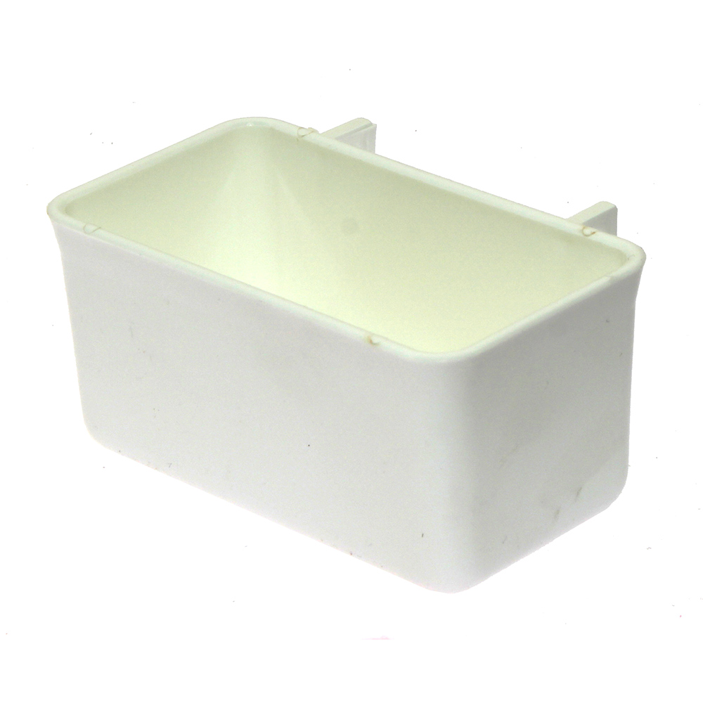 Uniwersalny karmnik na ziarno przeznaczony do zawieszania w klatkach wystawowych dla gołębi czy ptaków egzotycznych. Pojemnik na karmę dla gołębi wykonany został z solidnego tworzywa sztucznego, które łatwo można poddać dezynfekcji. Karmnik dla gołębi ma neutralny biały kolor. Konstrukcja pojemniczka sprawia, że z powodzeniem karmnik może być również stosowany jako poidło na wodę do klatek dla gołębi. Karmnik do klatek wystawowych dla gołębi pocztowych wyposażony został w dwa wytrzymałe uchwyty do zawieszania na froncie klatki. Odstęp między uchwytami wynosi 6 cm. Karmnik na paszę dla gołębi łatwo zawiesza się na prętach klatki, a co ważniejsze po umiejscowieniu całość bardzo dobrze się utrzymuje. W ofercie sklepu znajduje się również szeroka oferta poideł dla gołębi.