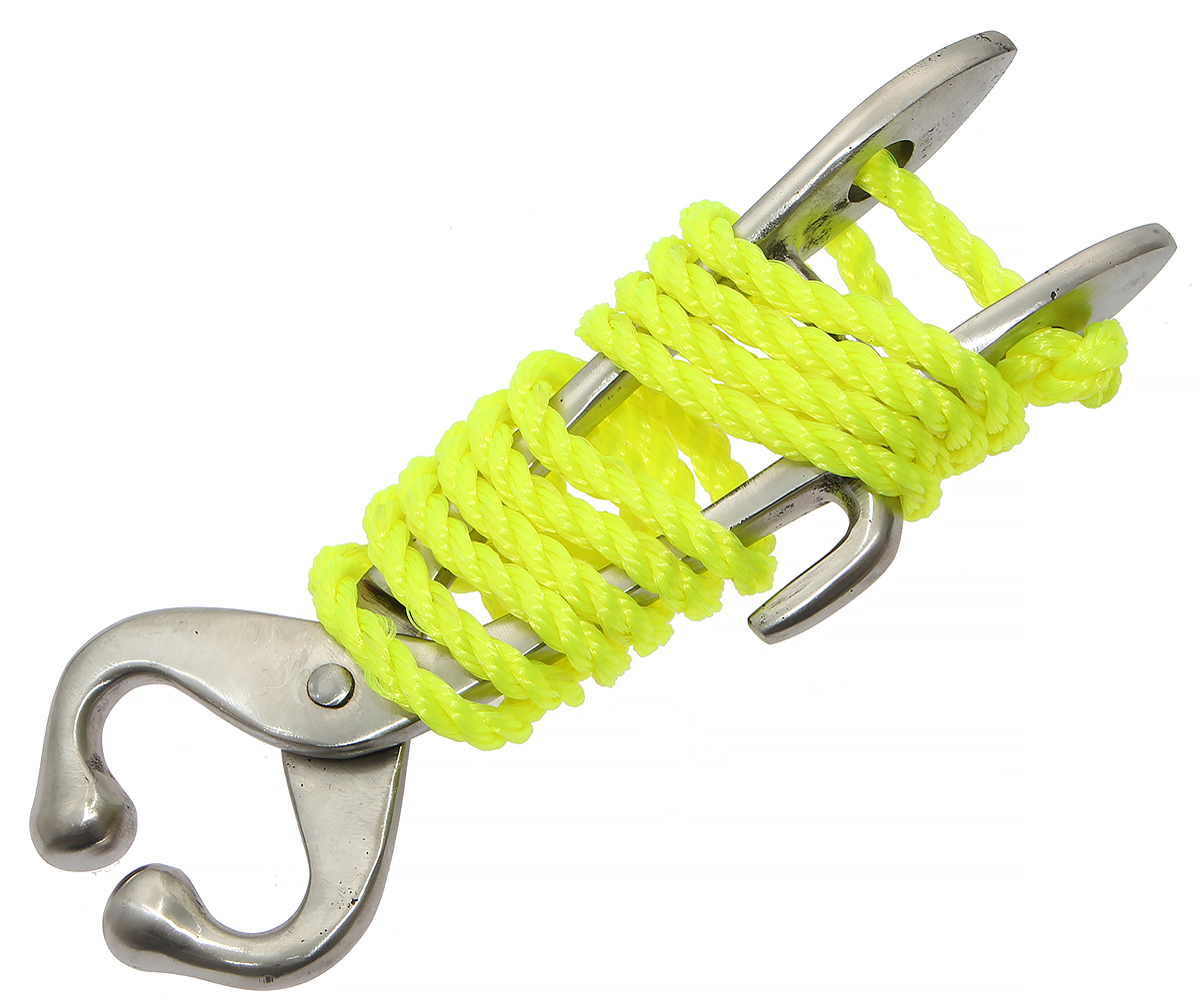 Niklowany uchwyt do nosa dla byków ma długość 20 cm, natomiast lina o grubości 0,7 cm ma długość ok. 130 cm.