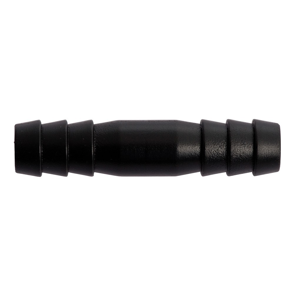 Łącznik prosty węża o średnicy fi10. Specjalny profil końcówek powoduje, iż wąż zaciśnięty jest pewnie i nie wymaga dodatkowych zacisków ani obejm.