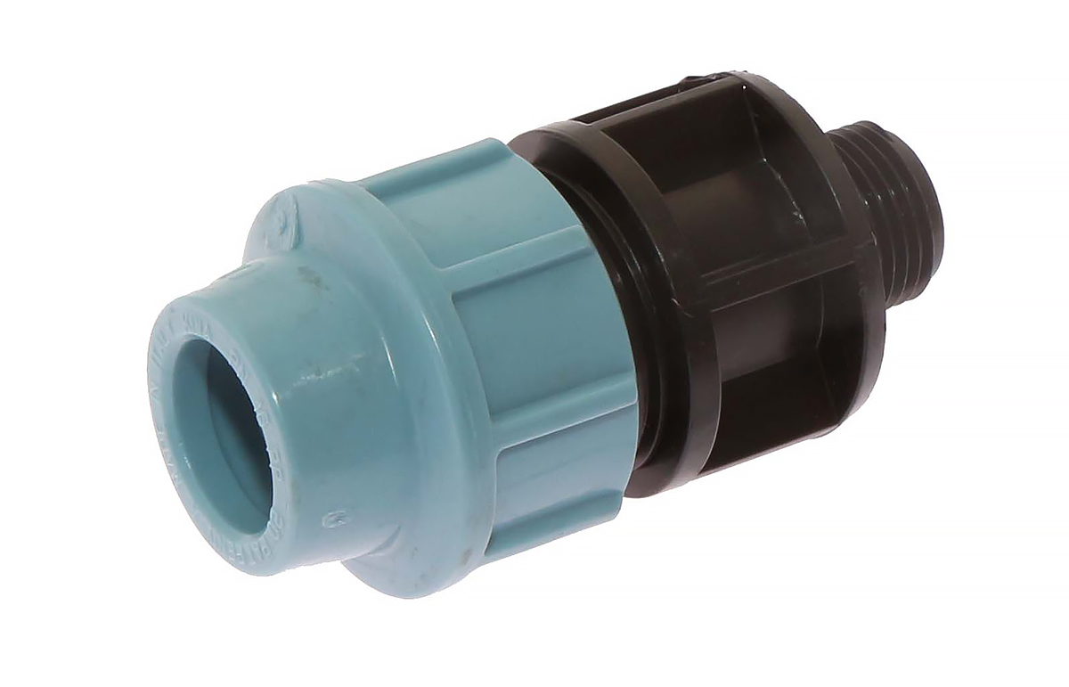 Złączka prosta na wąż PE fi 20 mm do systemu pojenia dzwonowego wyjście GZ 1/2 cala
