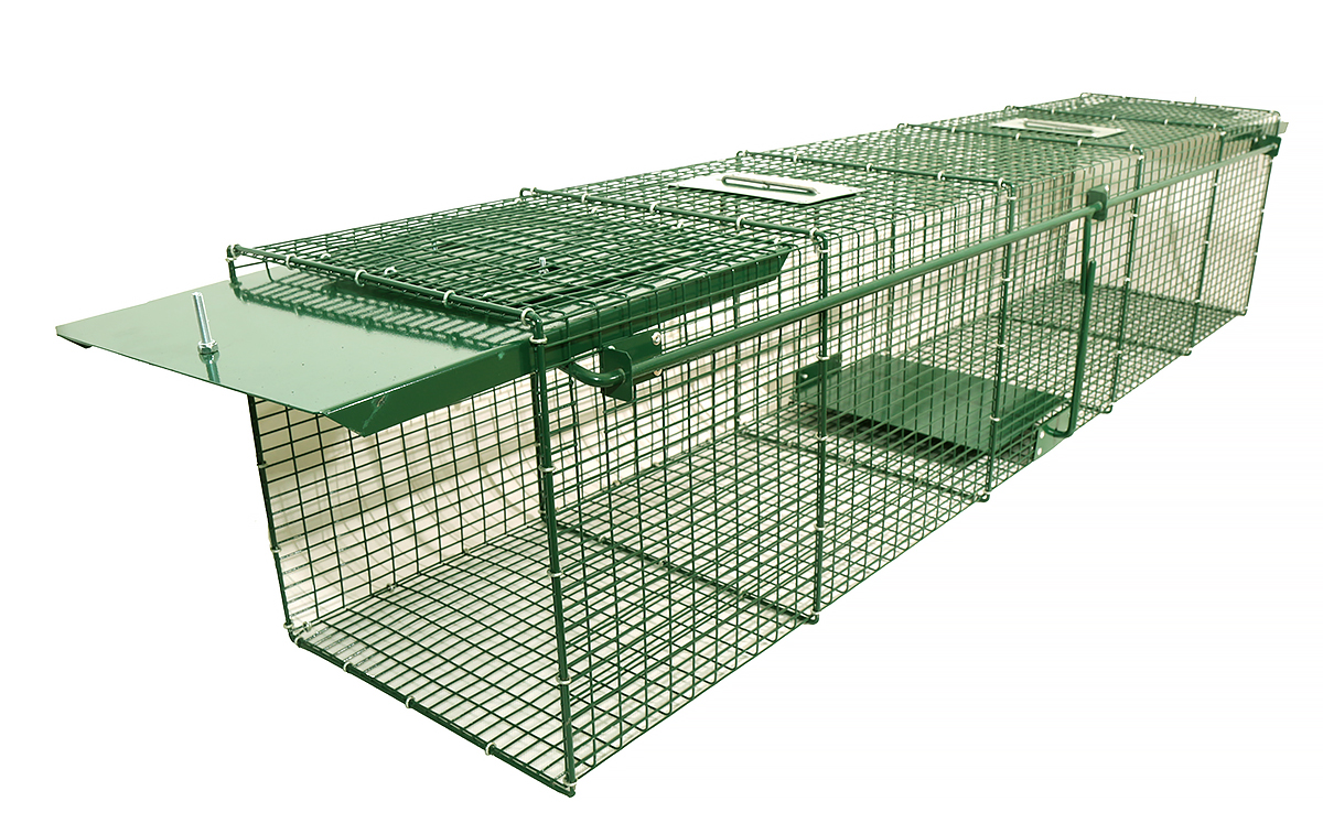 Najwyższej klasy, dużych rozmiarów pułapka żywołowna do chwytania większych szkodników - bobrów, borsuków, lisów czy wydr. Powyższa łapica na bobry posiada aż 150 cm długości i dwa duże otwory wejściowe o wymiarze 30 x 30 cm, dzięki czemu bez problemu chwyta wszelkie szkodnki. Co więcej, klatka do łapania lisów wykonana została z wytrzymałej kraty zgrzewanej, wzmocnionej grubymi prętami fi 5 mm, co zatrzyma nawet najbardziej agresywnego osobnika.Krata zgrzewana, z której wykonano klatkę posiada średnicę drutu 1,8 mm. Całość została pomalowana proszkowo na kolor zielony, dzięki czemu pułapkę można w łatwy sposób zamaskować, w efekcie czego zwierzęta są mniej podejrzliwie i chętniej sięgają po przynętę.Samołap na bobry działa na bardzo prostej zasadzie. Po środku klatki, na płytce umieszczamy przynętę, po której poruszeniu aktywuje się system zapadek i zamykane są oba wyjścia pułapki na kuny. Po schwytaniu szkodnika można całość przenosić za pomocą osłoniętego uchwytu i wywieźć jak najdalej od miejsca zamieszkania.