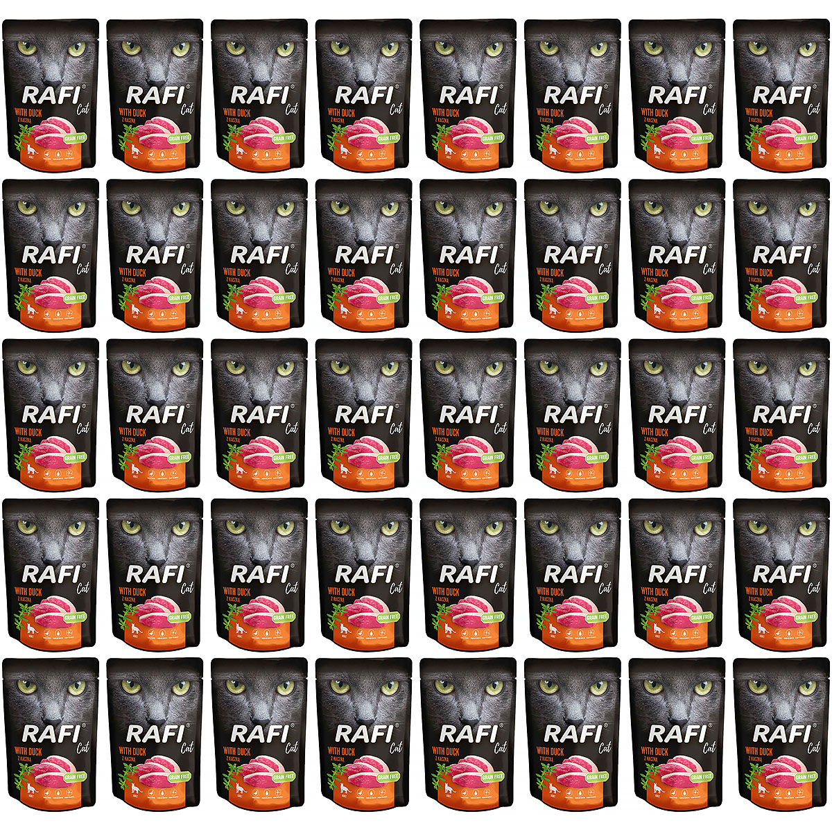 Mokra karma dla kota Rafi z kaczką 40 x 100 g to niezapomniane doświadczenie kulinarne, które idzie w parze z kompleksowym wsparciem żywieniowym dla Twojego pupila. Składniki odżywcze pochodzące z delikatnego mięsa kaczki tworzą idealną równowagę, dostarczając kotu nie tylko wyjątkowego smaku, lecz także kluczowych substancji wspierających jego zdrowie.