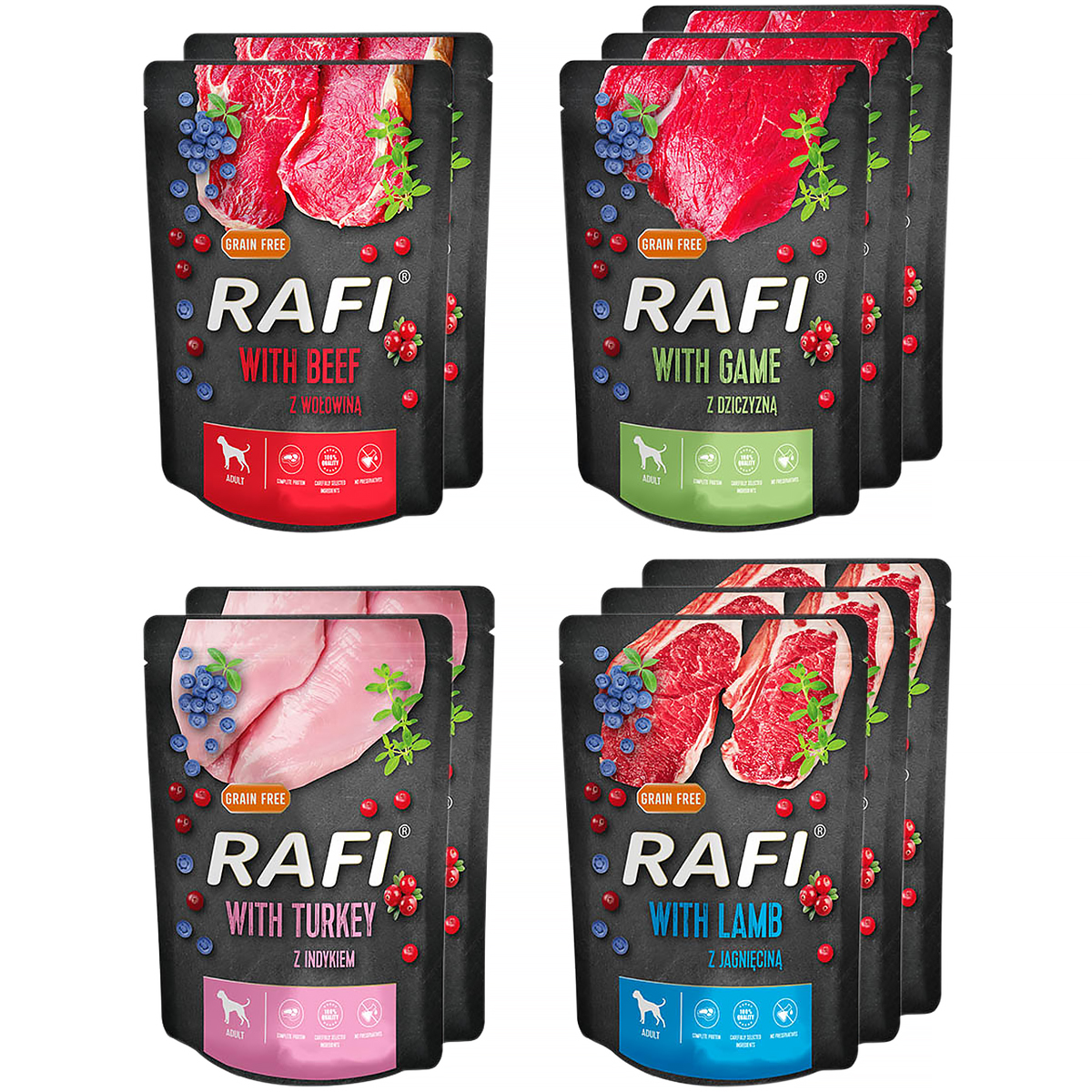 • 3 x RAFI z jagnięciną, borówką i żurawiną,