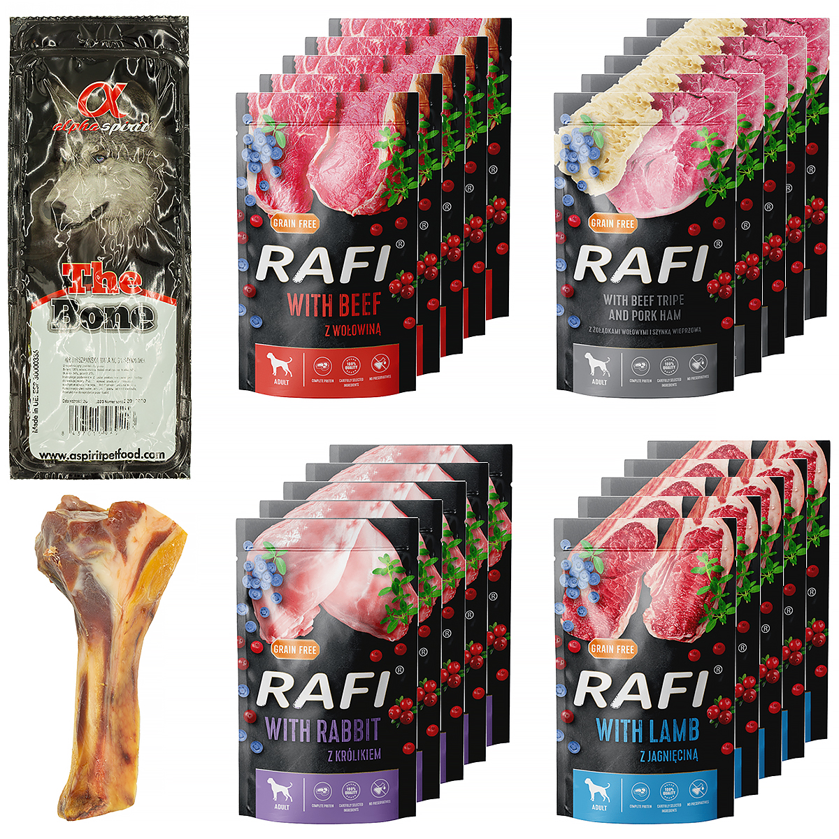 Mokra karma dla psa RAFI różne smaki w saszetkach zestaw 20 x 500 g