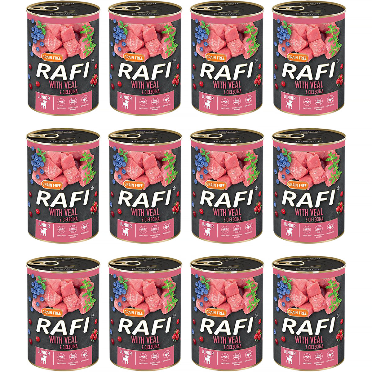 Mokra karma dla psa RAFI Junior z cielęciną to pełnowartościowe posiłki dla Twojego małego pupila, które dostarczają mu wiele witamin, minerałów i składników odżywczych potrzebnych do prawidłowego funkcjonowania i rozwoju organizmu. Bezzbożowa karma dla szczeniaków Rafi ma wysoką zawartość mięsa, co wpływa na lepsze trawienie. Młode psy mają inne potrzeby żywieniowe i dlatego muszą spożywać karmę dostosowaną do potrzeb rozwijającego się organizmu. Dzięki temu, że posiłek jest pyszny i aromatyczny zachęca szczeniaka do jedzenia.