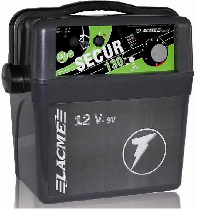 Elektryzator bateryjny Secur 130 może być zasilany z akumulatora 12 V, a także z 1 lub 2 baterii 9 V. Mocniejszy niż Secur 100 z najnowszymi funkcjami (Ecco 1/5), Accu-Protect, jak również zaciskami do łatwego podłączenia panelu słonecznego. Sprzedawany również w zestawie z panelem słonecznym 6 W.