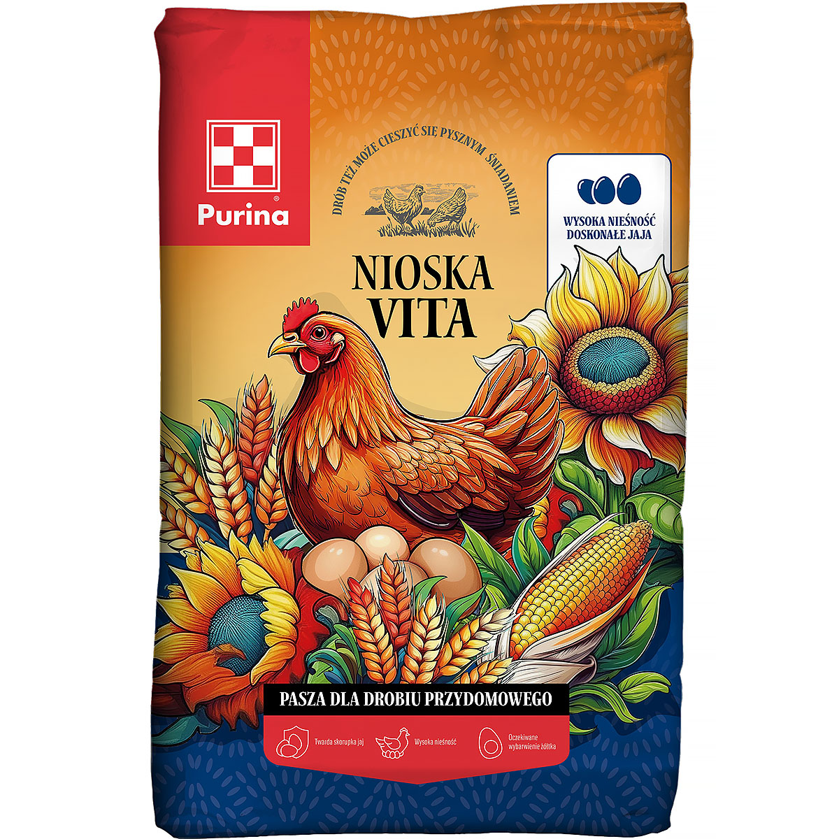 Nioska VITA to profesjonalna pasza pełnoporcjowa stworzona z myślą o hodowcach oczekujących wysokiej nieśności, zdrowia stada i doskonałej jakości jaj. Nioska VITA to zbilansowana mieszanka składników odżywczych z naciskiem na wysoką zawartość białka w składzie, której receptura została opracowana w oparciu o potrzeby kur niosek w okresie intensywnego znoszenia. Zawartość białka w oferowanej paszy to aż 18 % - dlatego jest to pasza wysokobiałkowa.