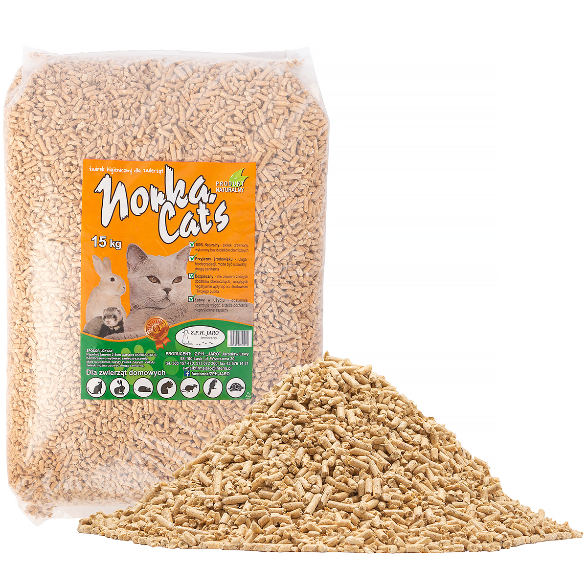 Żwirek pellet drewniany dla królików i kotów Norka Cat's 15 kg