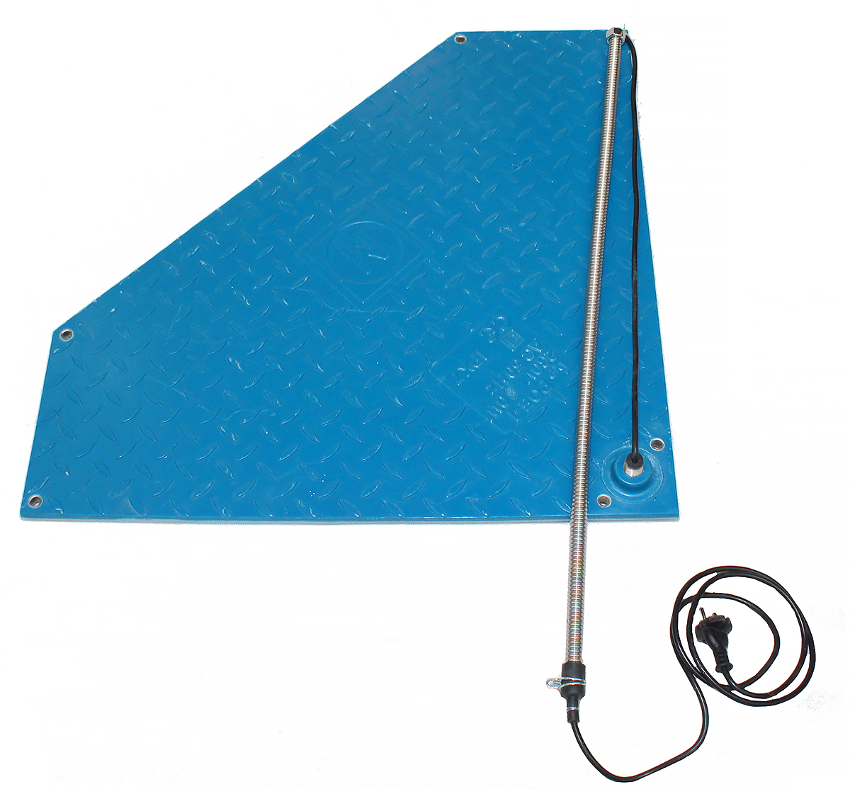 Najwyższej jakości płyta grzewcza do systemów rusztowych przeznaczona do podgrzewania prosiąt w kojcach porodowych. Producentem płyty narożnej jest renomowana niemiecka firma Monoflo. Zapewnia odpowiednie warunki termiczne tak istotne dla prosiąt w pierwszych dniach życia. Badania wykazały że tego typu dogrzewanie jest o wiele bardziej korzystne niż inne metody. Duża część hodowców stosuje aktualnie płyty grzewcze dla świń jako główne źródło ciepła z promiennikami jako uzupełnieniem. Płyta grzewcza legowiskowa jest coraz częściej stosowana zastępując przewody grzewcze zatapiane w posadzce betonowej. Płyta grzewcza narożna dla prosiąt posiada cztery otwory montażowe. Płytę po odsadzeniu prosiąt łatwo zdemontować chociażby w celu umycia i zdezynfekowania. Podstawowe parametry płyt grzewczych legowiskowych: