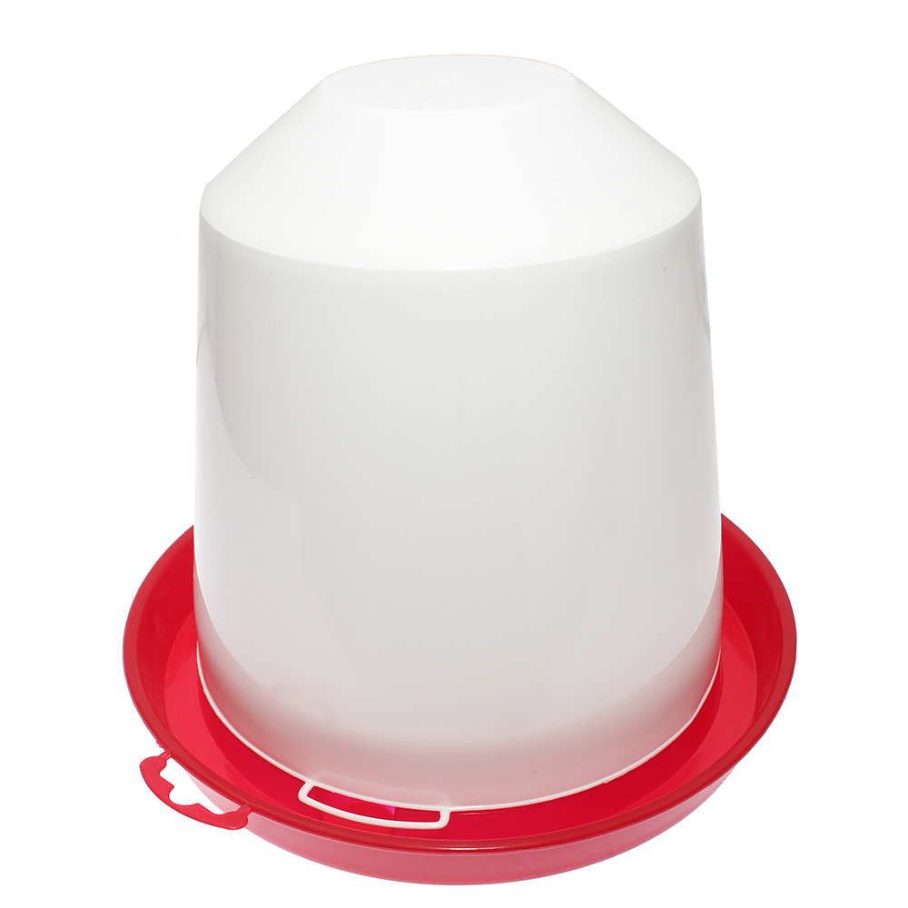 Poidełko dla drobiu składa się z zasobnika oraz misy. Pojemność bańki wynosi 5l, dzięki czemu hodowca nie musi go często uzupełniać. Ptaki mogą swobodnie pobierać wodę z czerwonej rynienki.