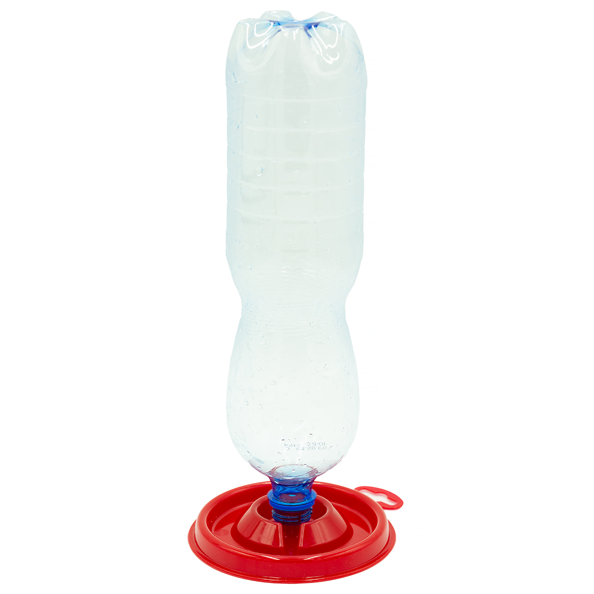 Uniwersalne poidło z przeznaczeniem dla drobiu każdego gatunku. Do poidła montuje się zwykłą plastikową butelkę (taką jak po napojach, wodach mineralnych).