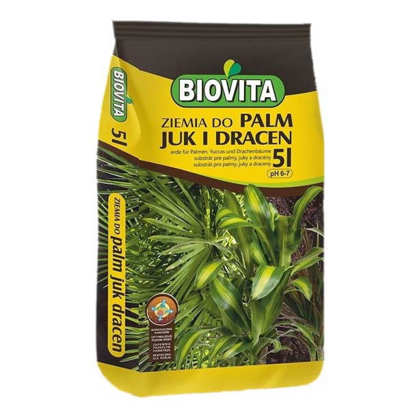 Ziemia do palm BIOVITA to podłoże do sadzenia i przesadzania roślin tj. palm, juk, dracen ale również do fikusów i innych roślin zielonych ( np. szeflery, fikusy, trzykrotki).