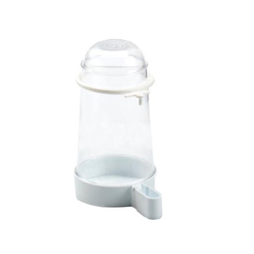 Zasobnik na wodę dla ptaków ozdobnych działa na zasadzie podciśnienia, dzięki czemu automatycznie uzupełnia jej poziom w miarę upijania wody przez papużki.