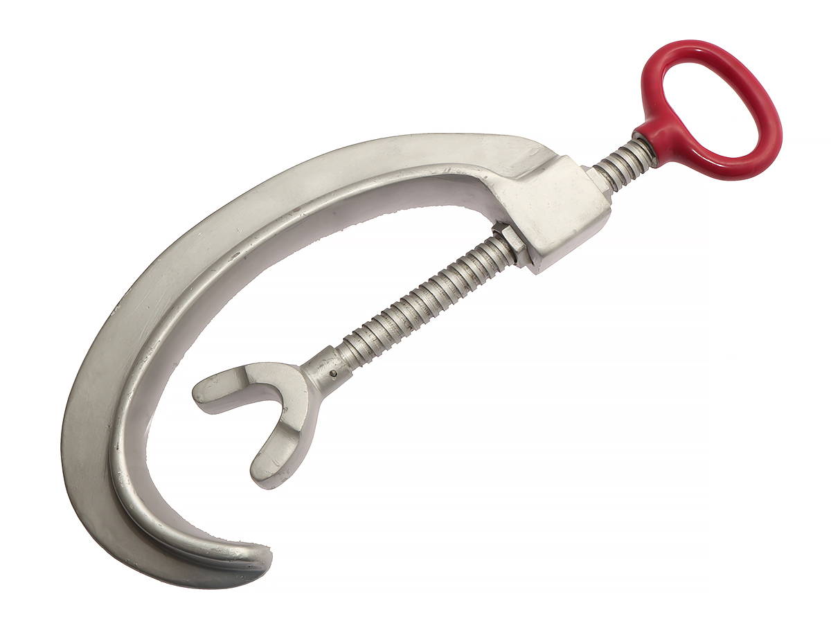 Praktyczna oraz niezbędna klamra służąca do poskramiania bydła podczas zabiegów weterynaryjnych. Poskrom dla bydła na ścięgno Achillesa ma długość 40 cm (sama prowadnica ma długość 20 cm). Poskrom przeciw kopaniu na ścięgno dla bydła zostało wykonane z trwałego i wytrzymałego aluminium. Prowadnicę poprzez skręcanie można łatwo dopasować do kończyny zwierzęcia by skutecznie je unieruchomić. Dodatkowym atutem klamry przeciw kopaniu dla bydła jest ergonomiczny uchwyt pokryto gumową antypoślizgową powłoką zwiększającą wygodę stosowania narzędzia podczas zabiegu.Solidna konstrukcja klamry poskramiającej na ścięgno bydła zapewnia bezpieczeństwo lekarza oraz zwierzęcia podczas zabiegu weterynaryjnego. Klamra umieszczona na ścięgnie Achillesa uniemożliwia bykowi uderzenie (kopnięcie) tylną kończyną. Zaletą stosowania klamry na ścięgno Achillesa przeciw kopaniu dla bydła jest możliwość bezbolesnego unieruchomienia zwierzęcia podczas różnego rodzaju zabiegów, m.in. podczas korekcji kopyt.