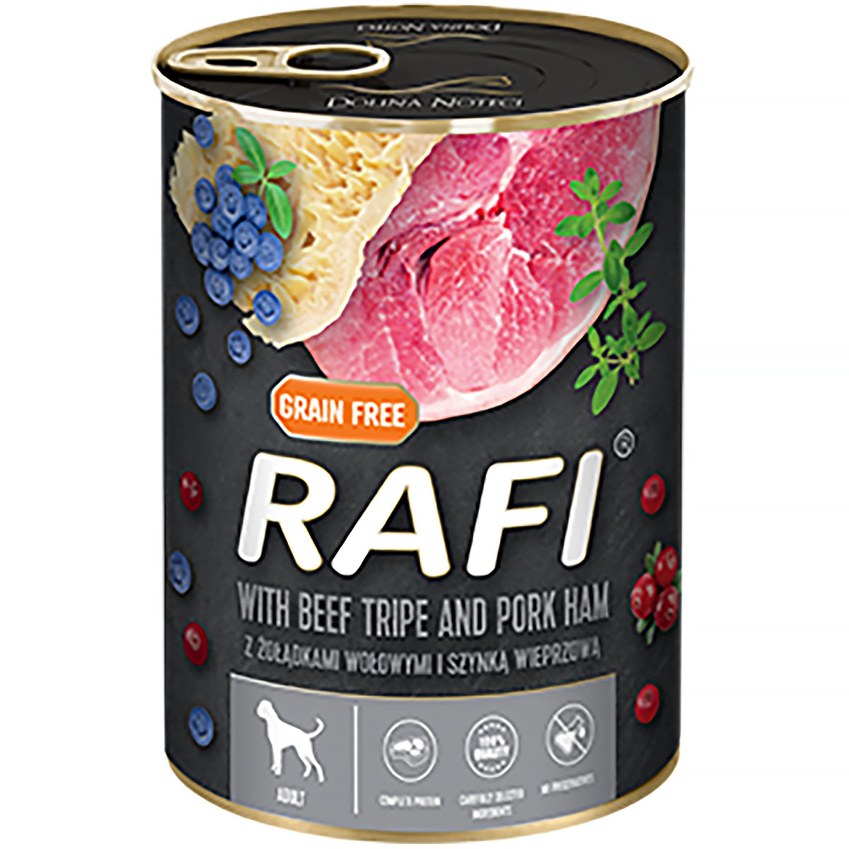 RAFI karma mokra z żołądkami wołowymi i szynką dla psa 400 g puszka 1 szt