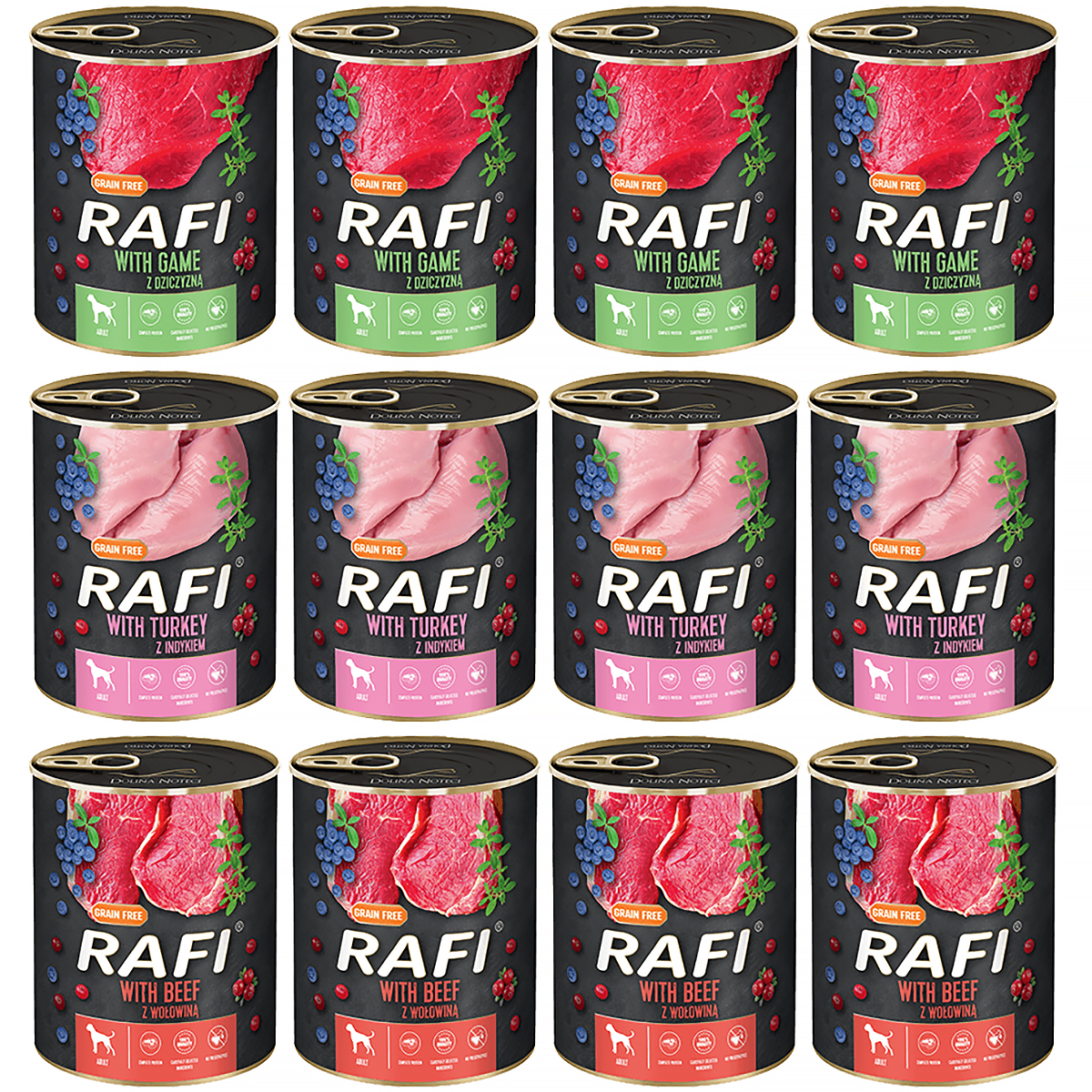 RAFI mokra karma dla psa mix 3 smaków 12 x 800 g:
