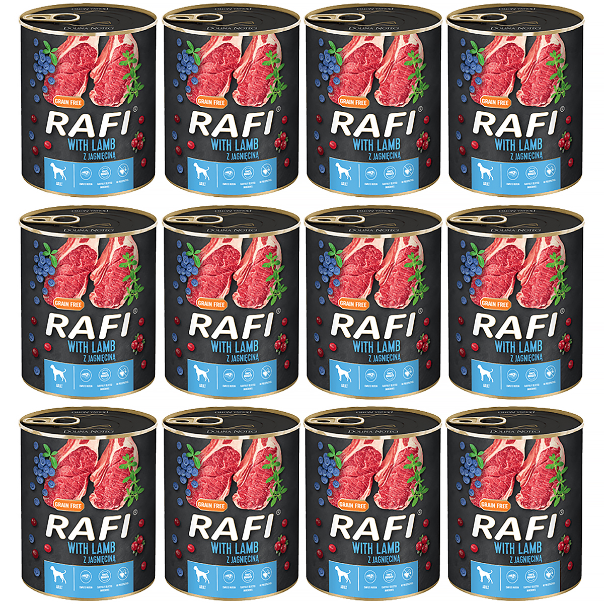RAFI Mokra karma dla psów z jagnięciną zestaw w puszkach 12 x 800 g