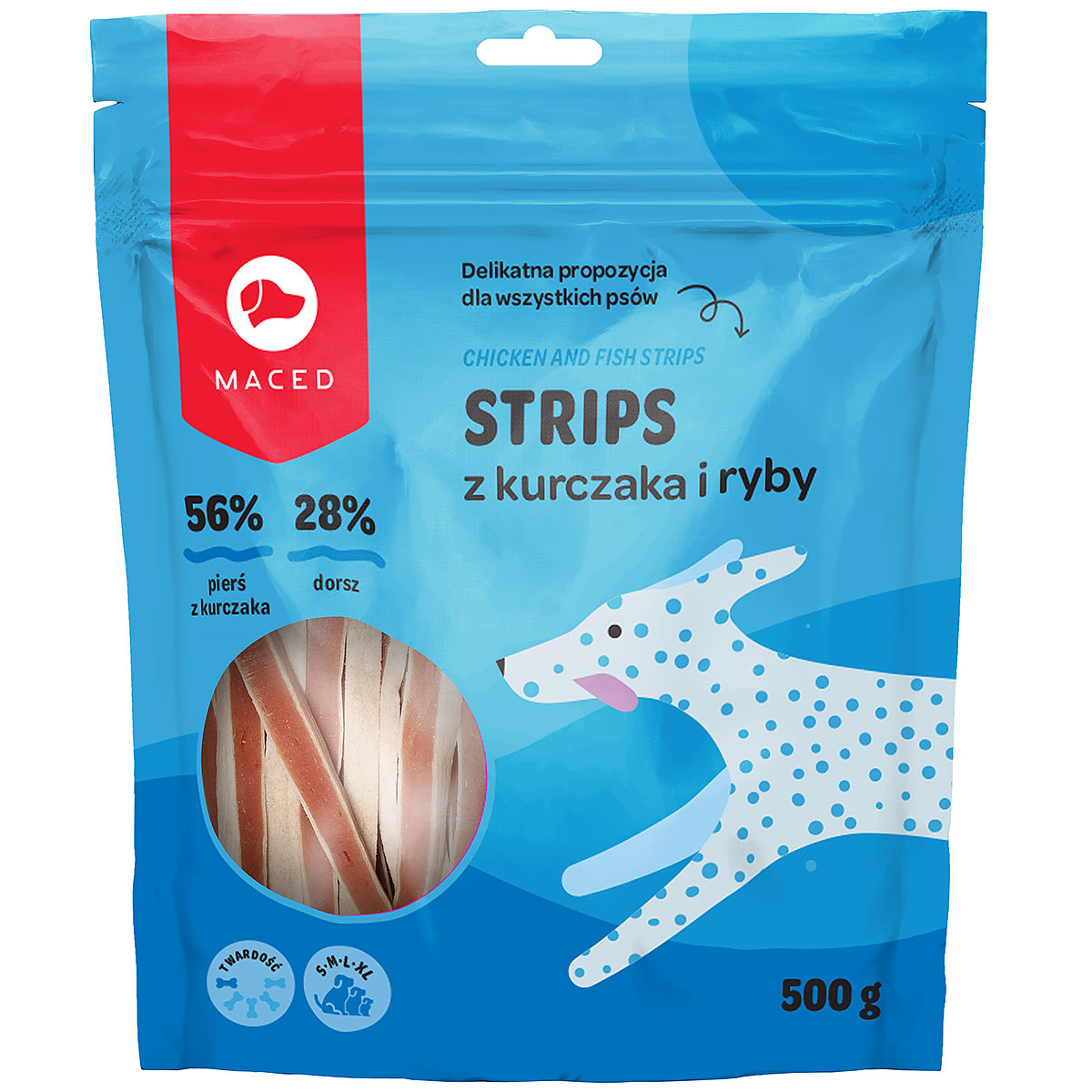 Zadaj pytanie o produkt Strips Maced paski kurczaka z rybą 0,5 kg przysmak dla psa