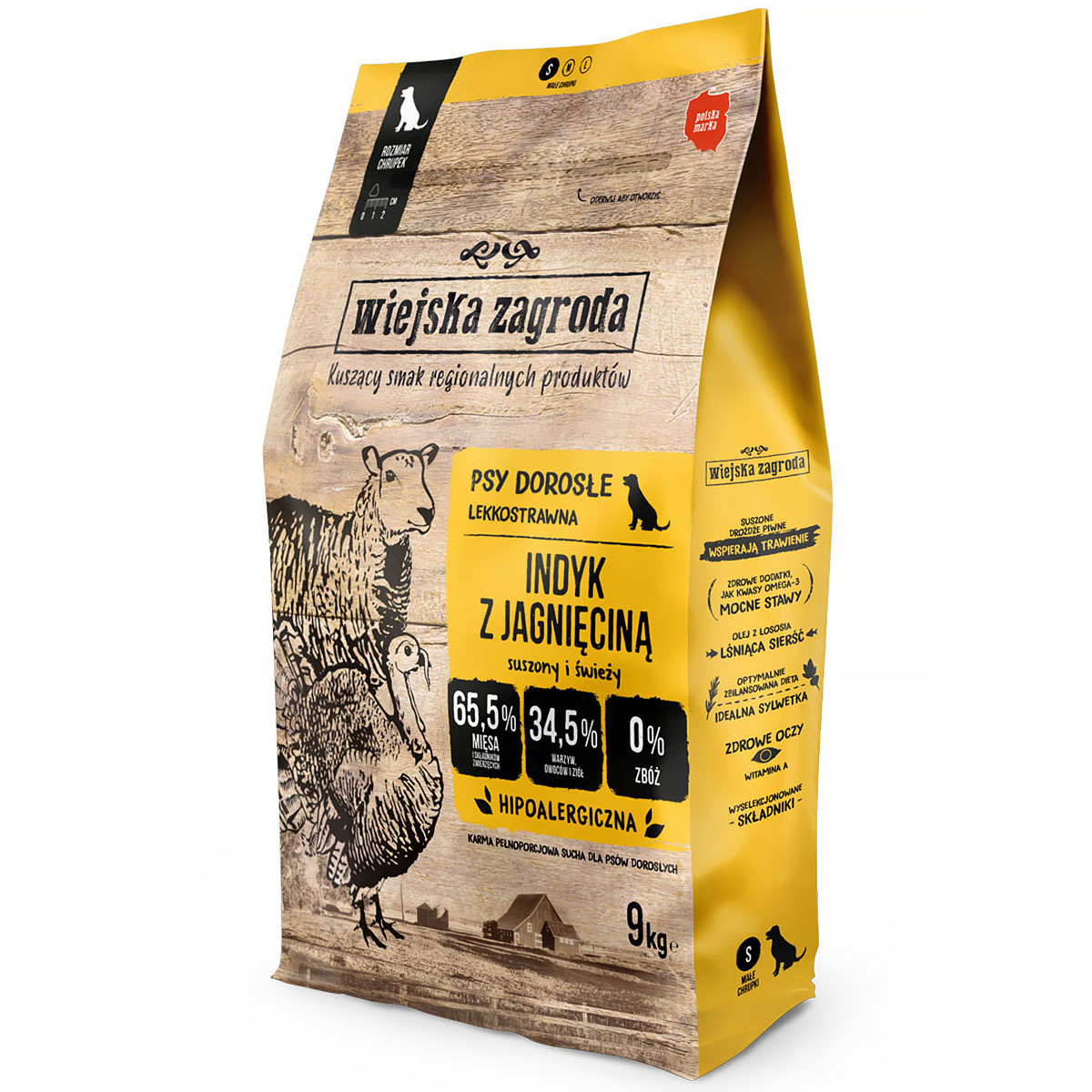 Sucha karma dla psa indyk z jagnięciną S Wiejska Zagroda 9 kg dorosłe psy