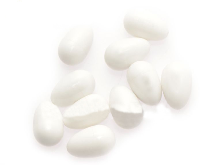 Niezbędne w każdej hodowli jajeczka podkładowe dla papużek. Wykonane są z mocnego tworzywa sztucznego. Jaja do podkładania dla ptaków ozdobnych są pełne w środku - masa pojedynczego jajeczka wynosi 5g. Mają wymiar: wysokość 27mm i średnicę w najszerszym miejscu 17mm. Dzięki temu mają one odpowiedni ciężar i kształt idealnie imitujący naturalny kształt i wymiar prawdziwych jaj składanych przez papużki.Sztuczne jaja dla papużek stosowane są w celu kontrolowania lęgów u ptaków egzotycznych jak papużki nierozłączki. W miarę składania jajeczek przez papużki, powinny być one stopniowo podmieniane sztucznymi. Dopiero gdy samiczka zakończy składanie jaj można z powrotem podłożyć prawdziwe. Tym sposobem poprzez podmienianie jajeczek u papużek falistych można sprawić że wszystkie pisklęta wyklują się w jednym terminie. Metoda podkładania sztucznych jajeczek wspomaga składanie nowych jajeczek u samic. Poza tym jest to niezawodny sposób na dziobanie jajeczek przez ptaki egzotyczne. Jajeczka podkładowe dla papużek falistych sprzedawane są w opakowaniach zbiorczych po 10szt.Do budowy miejsc lęgowych dla niosących się papużek lub kanarków polecamy specjalne gniazdka lęgowe z wkładami z juty do wyściełania gniazd.