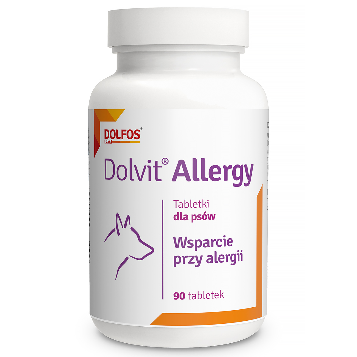 Tabletki Dolvit Allergy to suplement diety dla psa wspomagający podczas występowania reakcji alergicznych. Tabletki na alergię dla psa cechują się naturalnym składem, zawierającym zioła i kwiaty, które nie powodują podrażnienia żołądka, jak w przypadku standardowych tabletek. Wyciąg z ziół oraz kwiatów jest bogaty we flawonoidy, które łagodzą reakcje alergiczne poprzez zahamowanie wydzielania histaminy.