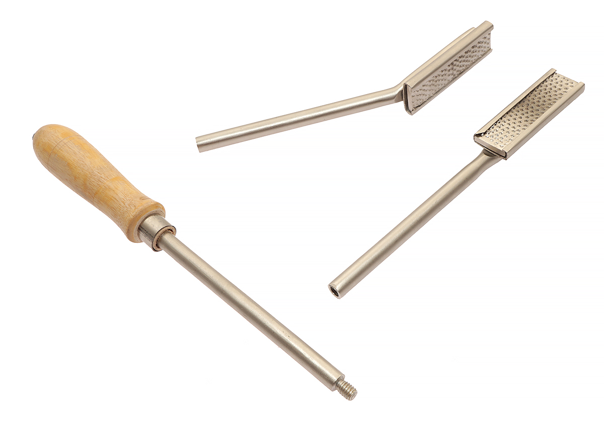 Tarnik do zębów dla koni wykonano z wysokiej jakości stali nierdzewnej. Produkt składa się z dwóch wymiennych głowic różniących się kątem ustawienia nasadki z tarczką ścierną. Jest to bardzo korzystne rozwiązanie, które umożliwia starcie każdego, nawet trudno dostępnego zęba, nie raniąc przy tym podniebienia konia.Długość całkowita tarnika do wyrównywania zgryzu konia wynosi 49 cm, natomiast głowica ścierna ma wymiar 80 x 25 mm. Tarnik wyposażony jest w drewniany ergonomiczny uchwyt ułatwiający operowanie narzędziem podczas pracy.