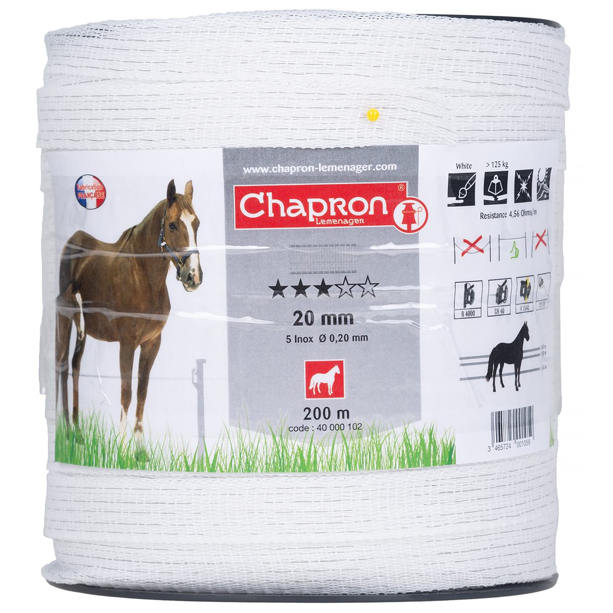 Taśma do ogrodzeń elektrycznych wykonana z wytrzymałego materiału. W taśmę wplecione jest 5 drucików ze stali nierdzewnej o grubości 0,2mm. Dobre właściwości przenoszenia impulsów elektrycznych. Szpula zawiera 200 metrów taśmy. Taśma idealnie nadaje się na ogrodzenia pastwisk dla koni, jest dobrze widoczna, nawet z większych odległości.Taśma wykonana z wysokiej jakości pleciwa polietylenowego o zwiększonej odporności na uszkodzenia mechaniczne. Wytrzymałość na zrywanie: 125kg.