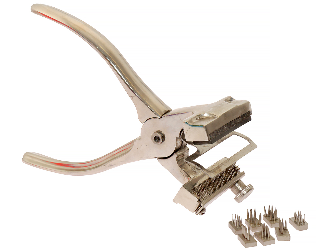 Komplet tatuownicy usznej zaciskowej do tatuowania prosiąt i macior wraz z 14 dowolnie wybranymi znakami. Zestaw niezbędny w każdym gospodarstwie hodowli świń oraz krolików.