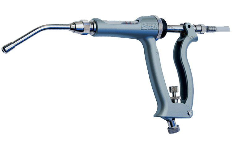 Bardzo ceniony i niezawodny aplikator weterynaryjny dla zwierząt.W pełni automatyczny drencher niemieckiej firmy HSW. Jest to typowo profesjonalny aplikator niezastąpiony przy dozowaniu leków, witamin lub innych medykamentów bezpośrednio do pyska zwierzęcia. Urządzenie jest w pełni automatyczne co sprawia, iż po wykonaniu wskazanej dawki cylinder automatycznie wypełni się kolejną dawką leku poprzez wąż doprowadzający. Całość wykonana jest niezwykle precyzyjnie i najwyższej jakości materiałów. W komplecie z drenczerem dołączona jest druga głowica z mocowaniem igieł luer lock, co sprawia, iż aplikator ten szybko może posłużyć jako strzykawka samo uzupełniająca. Do regulacji pracy służą dwie bezstopniowe śruby z kontr blokadami: jedna służy do precyzyjnej regulacji dawki, druga reguluje sprężynę odciągającą, co jest niezwykle przydatne przy aplikowaniu gęsty substancji. Przewód dołączony jest do drenchera, dla łatwiejszej pracy warto wyposażyć się w specjalny kanister na medykamenty 2,5 litra lub zasobnik 5 litrów.