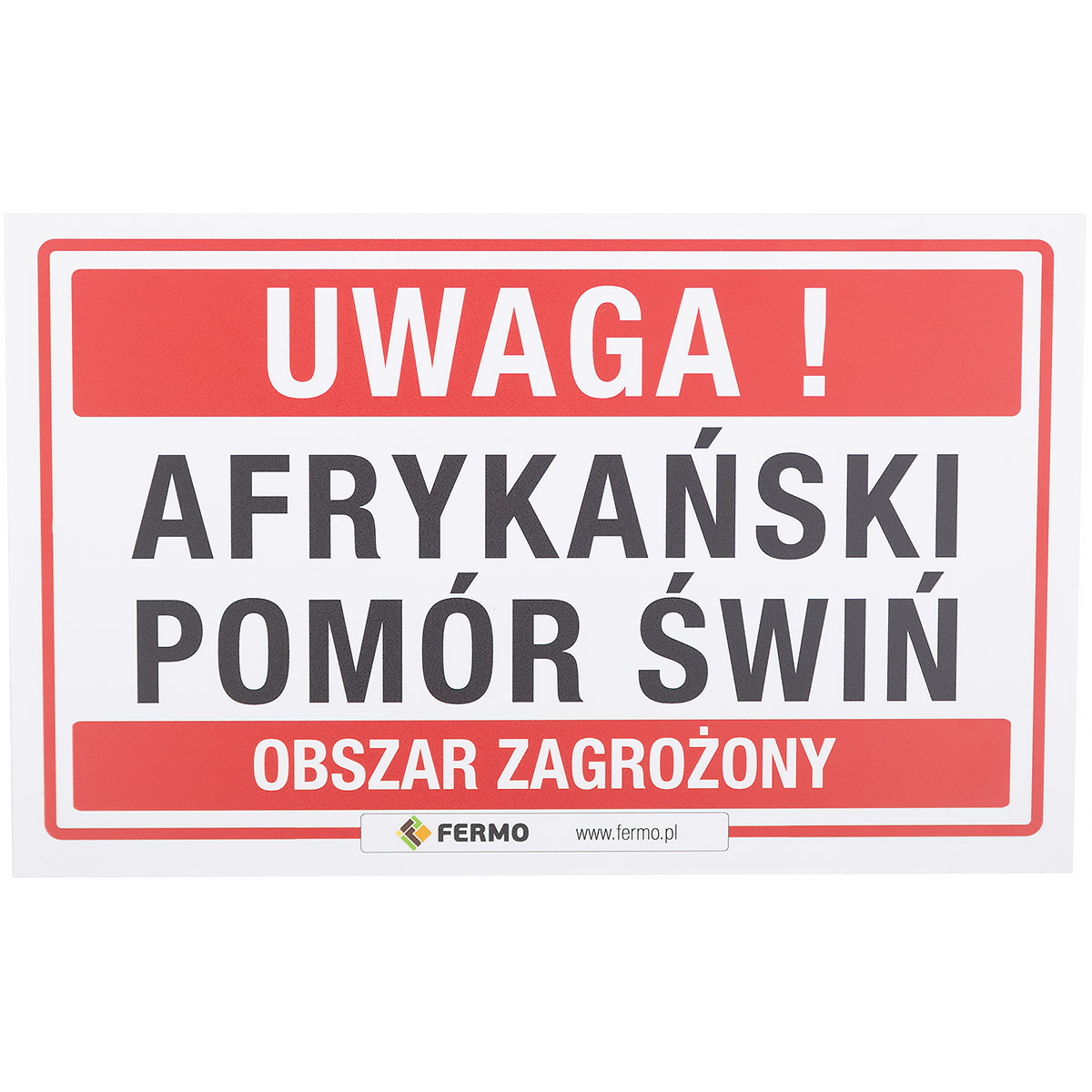 UWAGA, AFRYKAŃSKI POMÓR ŚWIŃ OBSZAR ZAGROŻONY tablica informacyjna to niezwykle istotny element informacyjny, dedykowany zarówno dla małych, jak i dużych gospodarstw hodowlanych utrzymujących trzodę chlewną, leśników oraz kół łowieckich. Jej celem jest skuteczne informowanie o zagrożeniu związanym z pojawieniem się wirusa Afrykańskiego Pomoru Świń (ASF).