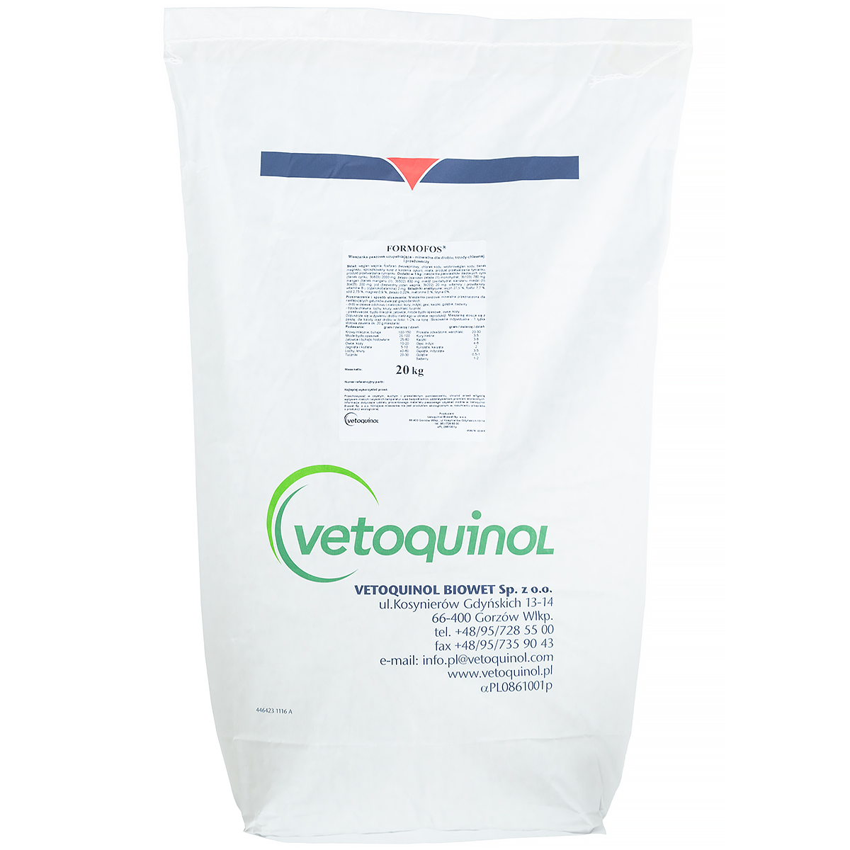 Formofos 20 kg to mieszanka mikro- i makroelementów przeznaczona do mieszania z paszą. Podawanie preparatu Formofos skutkuje lepszą produkcją oraz kondycją zwierząt.