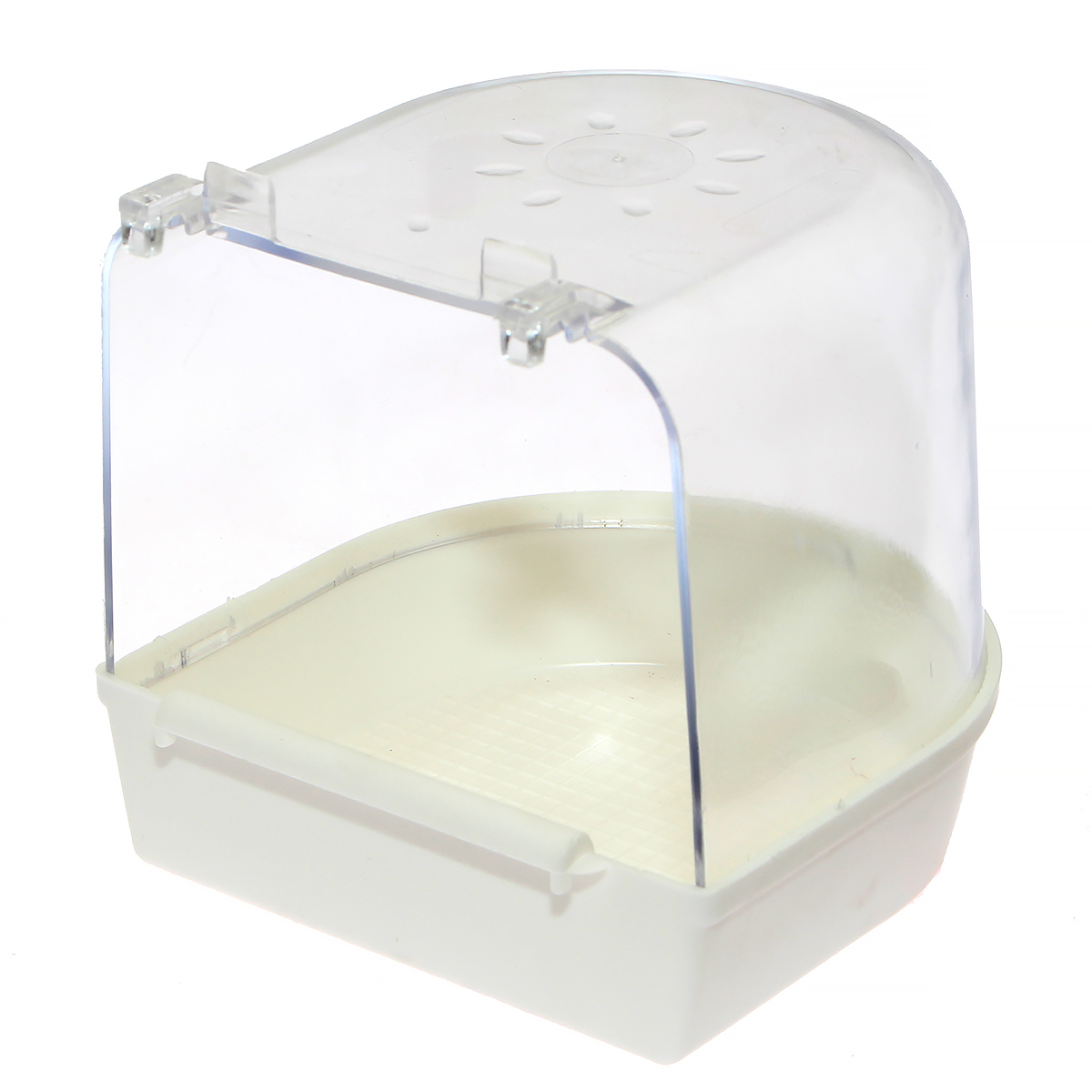 Wysokiej jakości duża wanienka kąpielowa przeznaczona dla kanarków, nimf, papużek falistych i innych mniejszych ptaszków hodowlanych. Oferowana wanienka kąpielowa dla papużek została wykonana z trwałego i wytrzymałego tworzywa sztucznego i posiada bardzo estetyczny wygląd. Basenik do kąpieli dla kanarków wyposażony został w solidne uchwyty do zawieszenia na zewnątrz klatki. Basenik kąpielowy zewnętrzny jest wygodny w użytkowaniu dla hodowcy, gdyż ma on do niego nieograniczony dostęp. Istotne jest jednak by w otworze na wanienkę umieścić klapkę by przy ewentualnym zdjęciu pojemnika klatka pozostała zamknięta. Spód wanienki dla kanarków jest biały, natomiast ściany boczne przezroczyste. Całość jest odpowiednio szczelna, dlatego basenik można uzupełnić dowolnie wodą lub piaskiem. Otwór wejściowy wanienki dla kanarków ma wymiar 12 x 8,5 cm. W ofercie znajdują sie również poidła oraz karmidła dla ptaków egzotycznych oraz inne elementy do wyposażenia klatek dla kanarków i papug.