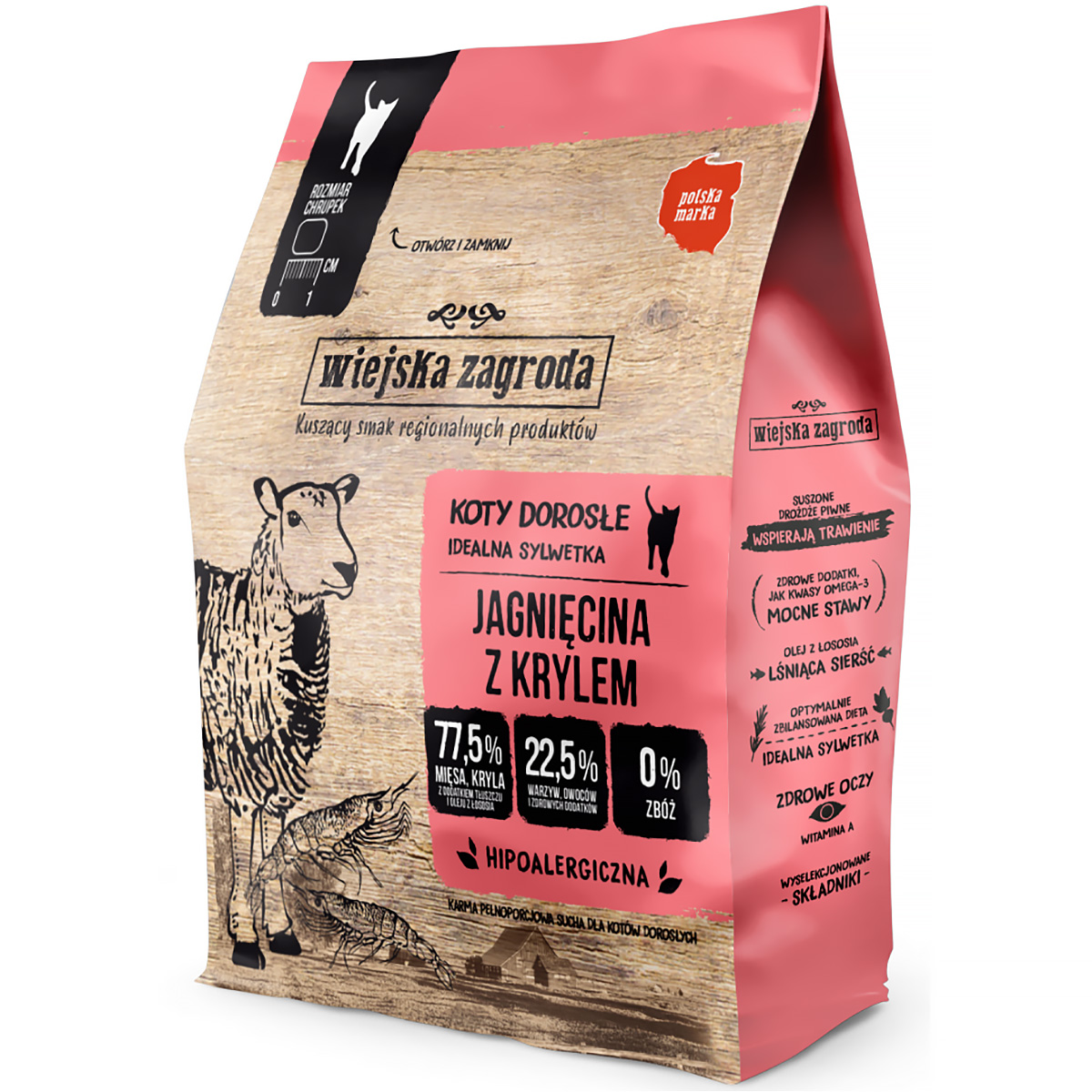 Pełnowartościowy posiłek został skomponowany z myślą o wyjątkowym smaku jagnięciny z krylem, ale również wsparcia