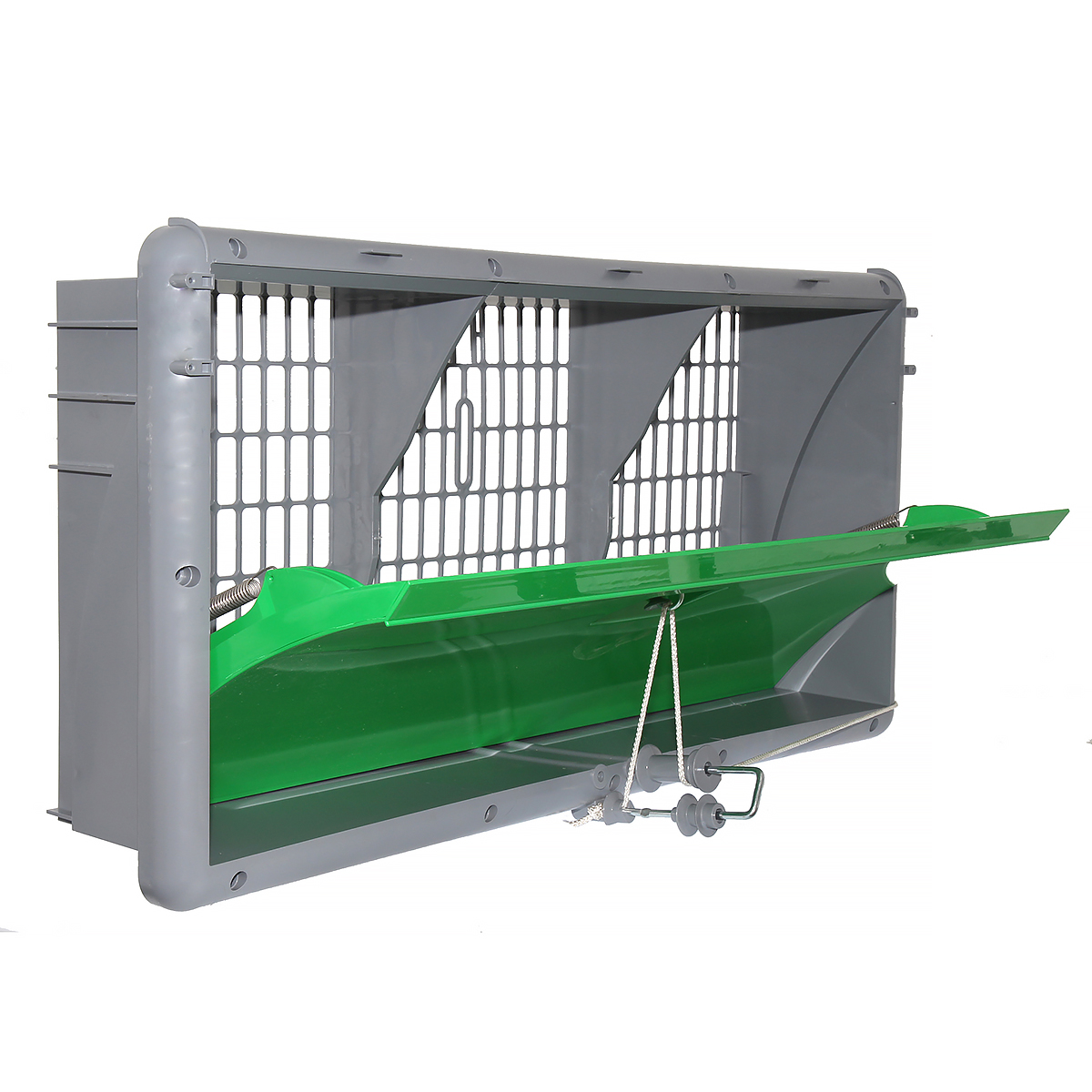 Wlot ścienny do kurników zostały wykonany wg. nowej konstrukcji. Klapa otwierająca przepływ powietrza została umieszczona w głębi wlotu i szczelnie obudowana przez ramę maskującą. Po pierwsze zapewnia to bardzo dużą szczelność. Po drugie i najważniejsze niezależnie od stopnia uchylenia klapy powietrze zawsze dostaje się tylko górną krawędzią, przez co nie dochodzi do zawirowań strumienia powietrza. Ma do kluczowe znaczenie przy zachowaniu właściwej cyrkulacji powietrza w