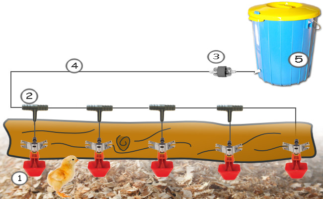 Kompletny zestaw automatycznego systemu pojenia miniDRINK dla kurcząt od pierwszego dnia życia .Doskonale sprawdza się dla bażantów, kuropatw, perliczek. Zestaw dedykowany dla małych hodowli hobbystycznych i przydomowych. Szczególnie polecany dla hodowli ekologicznych. Jest to system działający grawitacyjnie i nie potrzebuje żadnego źródła zasilania. Woda do poideł pobierana jest z zasobnika, który od czasu do czasu należy napełnić wodą.