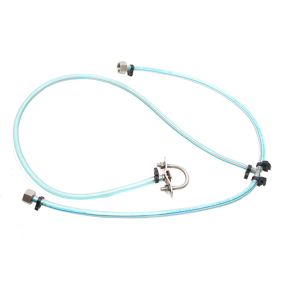 Wężyki do poideł smoczkowych dla świń wyposażone zostały w końcówkę z gwintem wewnętrznym 1/2" do których montowane są uchwyty do smoczków z regulowaną wysokością. Dodatkowo w zestawie znajduje się siodełko na rurę zasilającą PE, która doprowadza wodę do poideł.