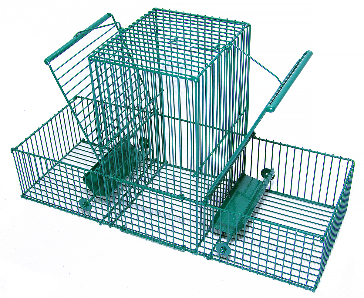 Oferowana żywołapka na ptaki wyposażona została w dwa oddzielne wejścia z niezależnym systemem zapadkowym. Odrębny system zapadkowy oznacza, że do pułapki złapać się mogą dwa ptaki. Dodatkowo słapce na ptaki posiadają oddzielny boks, np. na żywą przynętę, za którą posłużyć może złapany wcześniej ptak, który swoim odgłosem będzie nawoływał inne ze swojego gatunku. Oba wejścia posiadają czułą rynienkę zapadkową, która skutecznie blokuje drzwiczki do pułapki. Rynienka służyć może również jako miejsce, gdzie wsypuje się pokarm, który zwabi ptaki (ziarna, okruszki chleba, itp.). Jest to bardzo korzystne i praktyczne rozwiązanie konstrukcyjne.